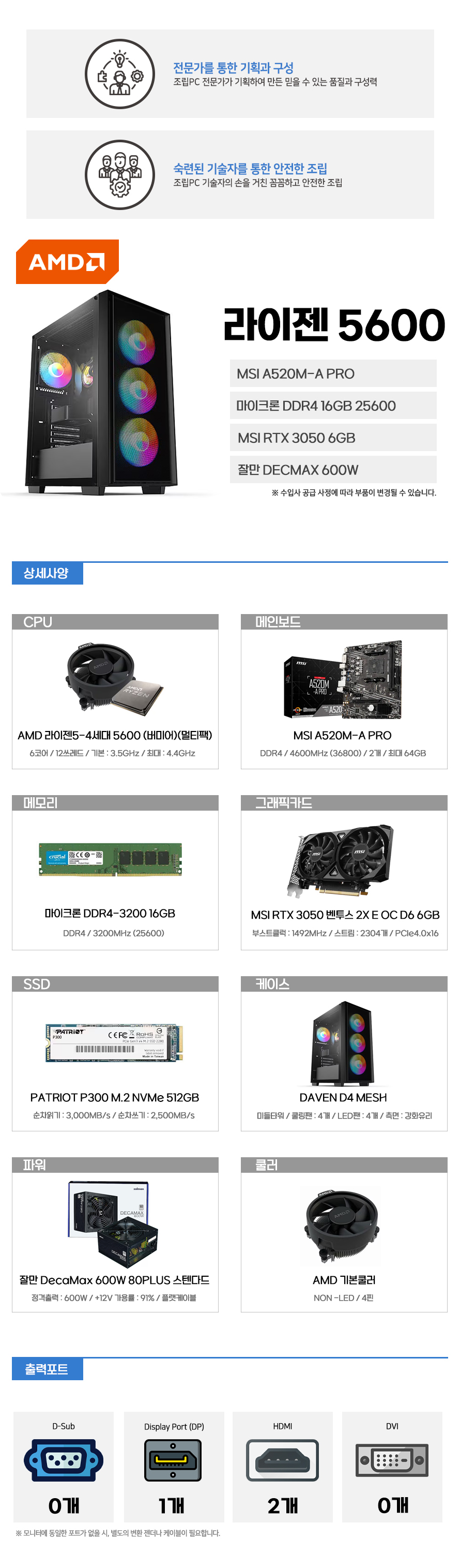 기본) AMD 5600 RTX 3050 가성비 조립 PC 게이밍부터 작업까지